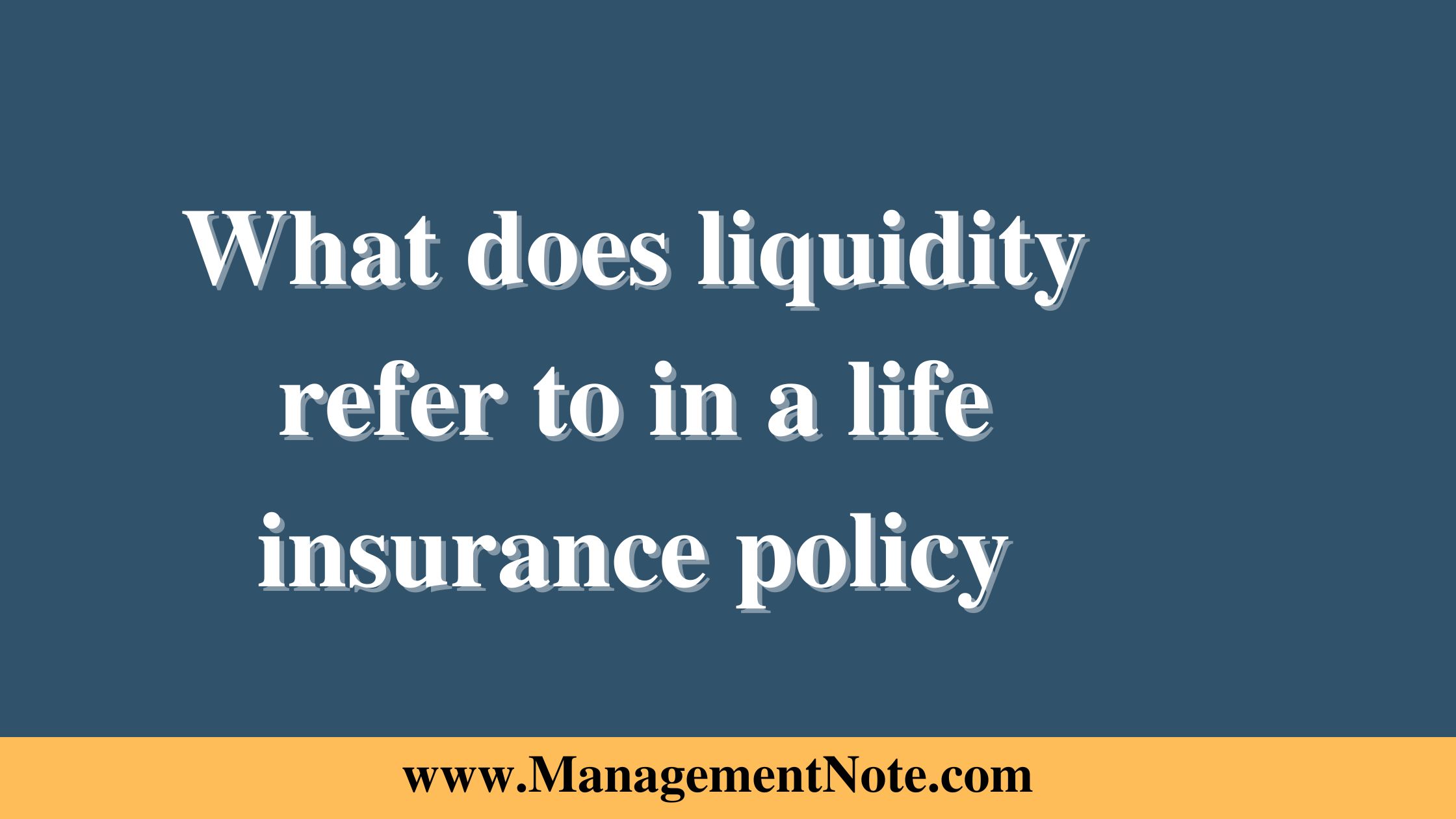 The liquidity of a life insurance policy refers to the availability of cash value to the policyholder. Reviews Trusted by 45000000. What does liquidity refer to in a life insurance policy.